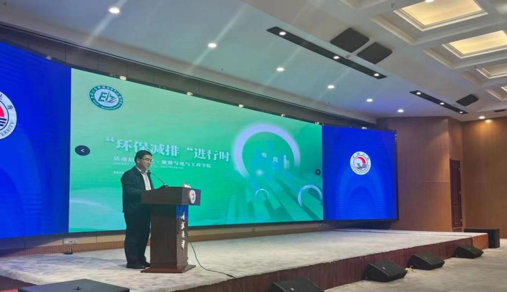 活动伊始,院党委副书记杨新存代表学院党委致辞,他提到能电学院在清洁能源领域已形成了基于学科交叉、协同创新的高水创新平台,此次活动既是对中华民族勤俭节约传统美德的传承,也是弘扬社会主义核心价值观的重要体现,希望能在全院范围内形成低碳生活的风尚,助力环保先行。