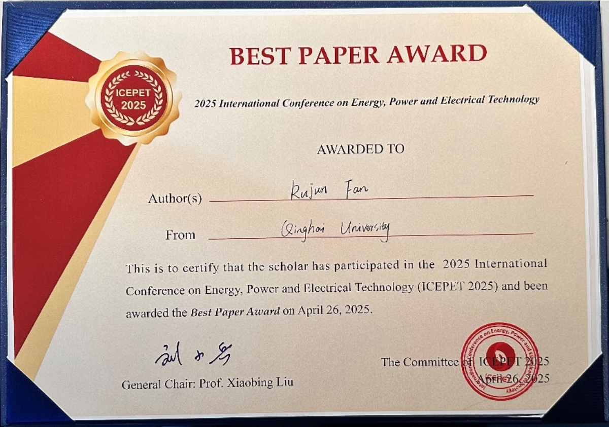 2025年4月25日至27日,第四届能源、电力与电气国际学术会议(ICEPET 2025)在成都召开。笔趣阁 热电氢储联合优化团队汇报了虚拟电厂结合基于工业余热压缩空气储能优化运行方向的最新研究成果。我校研究生范如俊同学的论文“Optimal operation of virtual power plant based on industrial waste heat compressed air energy storage-photovoltaic power plant”荣获优秀论文奖。