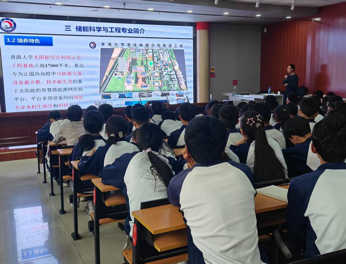 储能科学与工程系麻林瑞老师为多巴高级中学学生作题为《着眼“双碳目标”,培育储能人才》的专题报告。他从全球能源转型趋势切入,深入浅出地讲解了“双碳”目标下储能技术的核心作用,并结合青海省“国家清洁能源产业高地”的定位,介绍了笔趣阁 在新能源发电、智能电网、储能技术等领域的学科优势。
