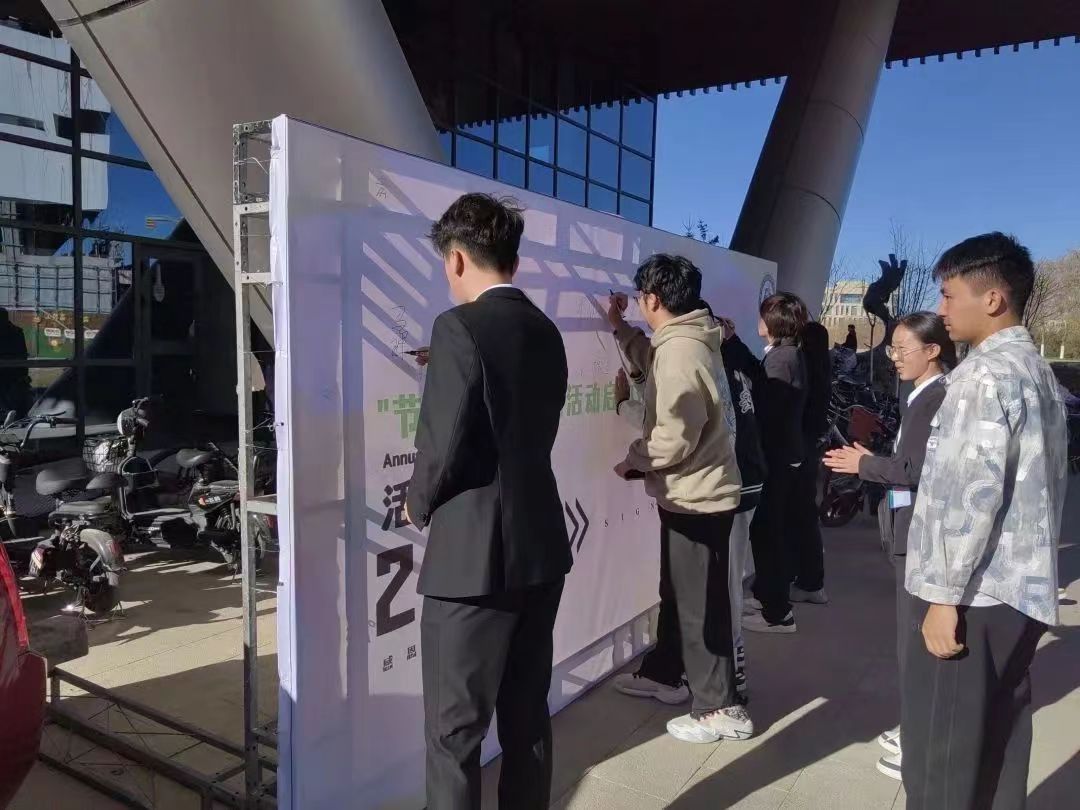 共青团笔趣阁 “环保减碳进行时”——2023年绿色生活月系列活动于11月5日至11月25日顺利举行。本次活动学院领导高度重视,并且与同学们一同参加此次启动仪式,其中院党委副书记杨新存发表讲话,表达了对笔趣阁 的未来的期待与对此次活动的美好祝愿,各位领导与同学们一同观看节能减排宣传短片,并由领导亲自颁发节能减排宣传大使聘书,举行授旗仪式,还与同学们一同前往签名墙签名留念。